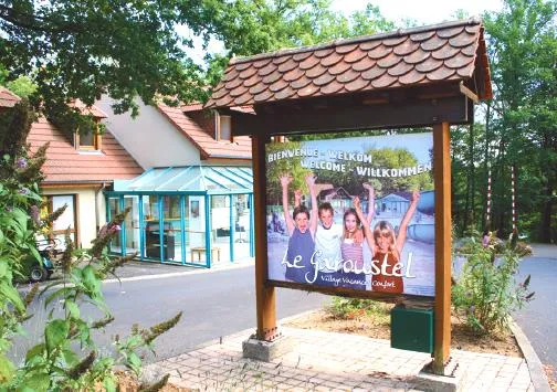 Groene camping aan de oever van een stuwmeer met uitzicht over het water. Met strand en een watersportcentrum aan het meer.