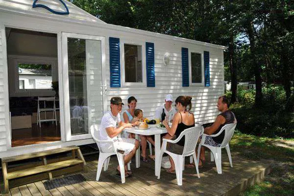 Camping Aurilandes biedt verhuur van luxe stacaravans/chalets, ingerichte tenten .