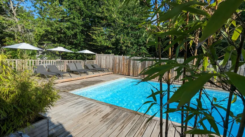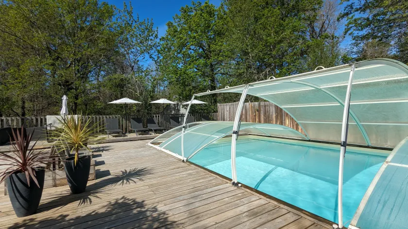 Op de camping vind je een prachtig buitenzwembad dat verwarmd is, zodat de temperatuur altijd aangenaam is. Het zwembad is zo gelegen dat je tijdens het zwemmen kunt genieten van de rust van het bos. Voor de kleintjes is er een veilig ondiep gedeelte in het bad. Het zonneterras is voorzien van comfortabele houten ligbedden en parasols, passend bij de natuurlijke uitstraling van de camping. Hoewel er geen grote waterpark-attracties zijn, biedt dit zwembad precies de luxe en ontspanning die past bij een verblijf op dit exclusieve terrein midden in de natuur van de Périgord.