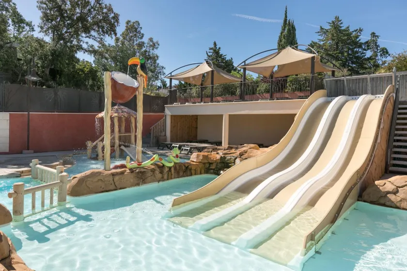 De camping is in de loop der jaren uitgegroeid tot een vakantieclub met vele gevarieerde activiteiten voor iedereen. Op het domein van 60 hectare liggen de toeristische staanplaatsen op het lage gedeelte, gescheiden van de huuraccommodaties. Hoge bomen en lagere bosschages zorgen voor voldoende schaduw en privacy. Centraal liggen het theater, het fantastische waterpark met diverse zwembaden, glijbanen, splashpark, wellness- en fitnessruimte, naast winkeltjes en restauratieve gelegenheden.