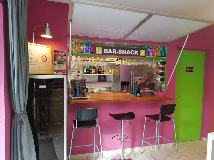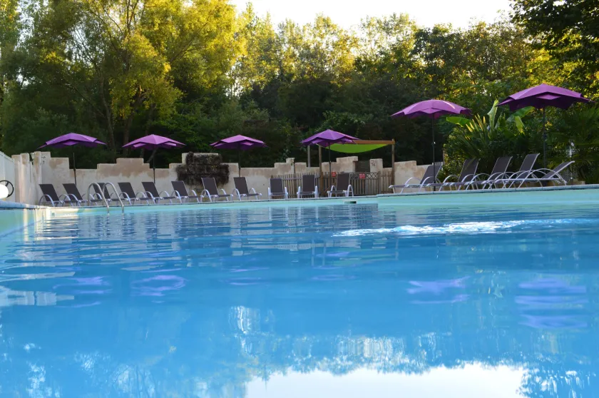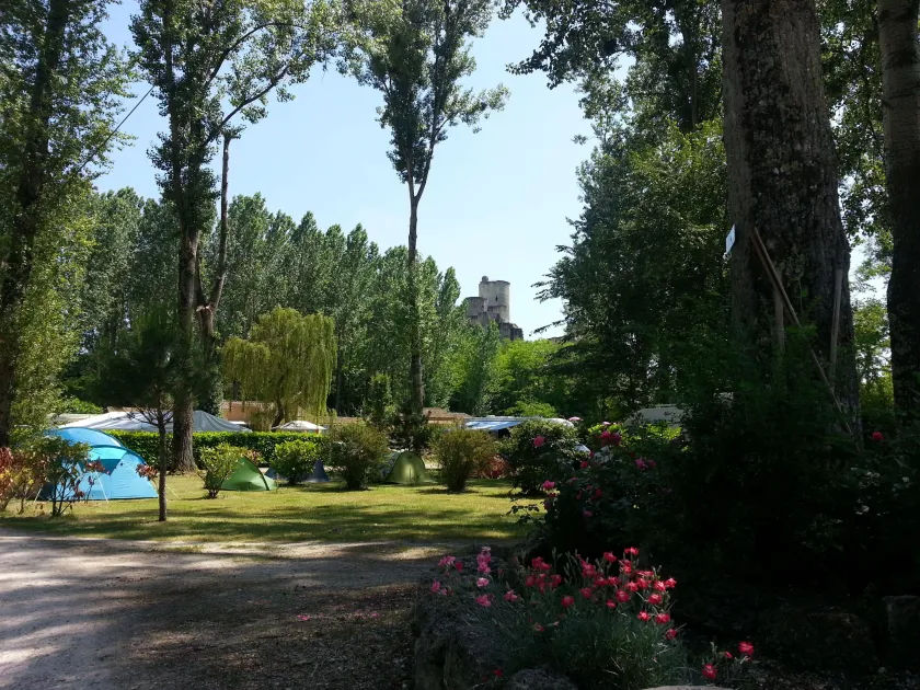 Sommige standplaatsen op het licht glooiende terrein kijken uit op het oude kasteel van Rauzan. Het binnenterrein wordt gebruikt voor diverse activiteiten. De vlakke plaatsen bieden voldoende privacy. Op een apart deel van de compacte camping liggen de vaste standplaatsen. Achter de camping loopt een voetpad naar het op 75 m hoogte gelegen kasteel.