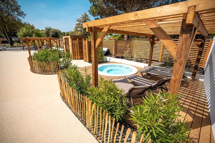 Ja, camping L'ile Blanche heeft een buitenbad, een binnenbad, een kinderbad.