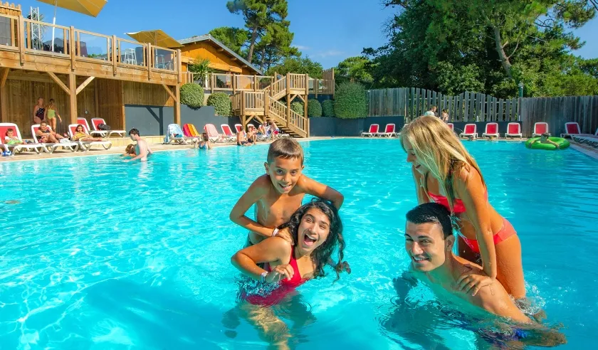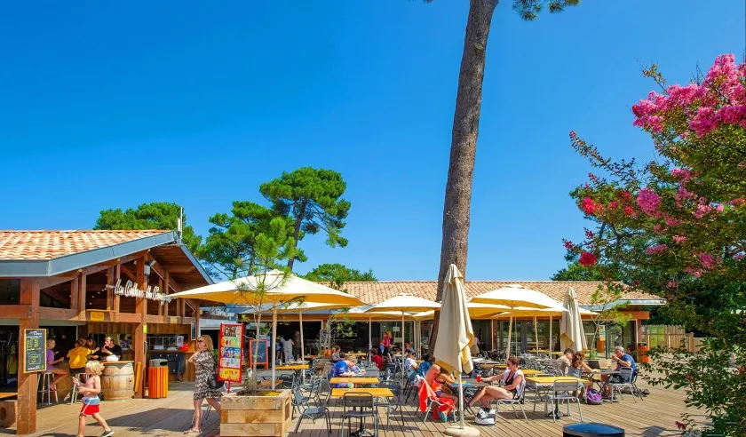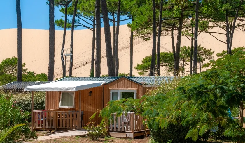 Camping La Forêt ligt aan de voet van Europa's hoogste duin, de Dune du Pilat. Verkoeling zoek je in het zwembad of in de zee (die direct achter de duin gelegen is). Het directe strand ligt op 200 meter en is alleen te bereiken door over de duin te klimmen, andere stranden liggen op 3 km afstand. De houten mobilhomes liggen op mooie plaatsen. Het animatieteam biedt zowel overdag als 's avonds talloze activiteiten aan, van sporttoernooien tot optredens. Het bruisende Biscarrosse op 20 km afstand heeft veel boetieks en restaurants; Bordeaux op 50 km heeft een prachtig centrum met veel gezellige straatjes. Wijnliefhebbers hebben de keuze uit vele bekende wijndomeinen die de streek rijk is. Leuk voor kinderen is het waterpark Aqualand op 10 km van de camping.