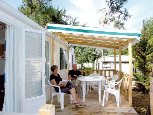 Camping Le Clos des Pins biedt verhuur van luxe stacaravans/chalets, ingerichte tenten, trekkershutten .