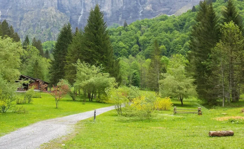 Camping Le Pelly ligt in Sixt-Fer-à-Cheval in de Haute-Savoie (regio Auvergne-Rhône-Alpen).