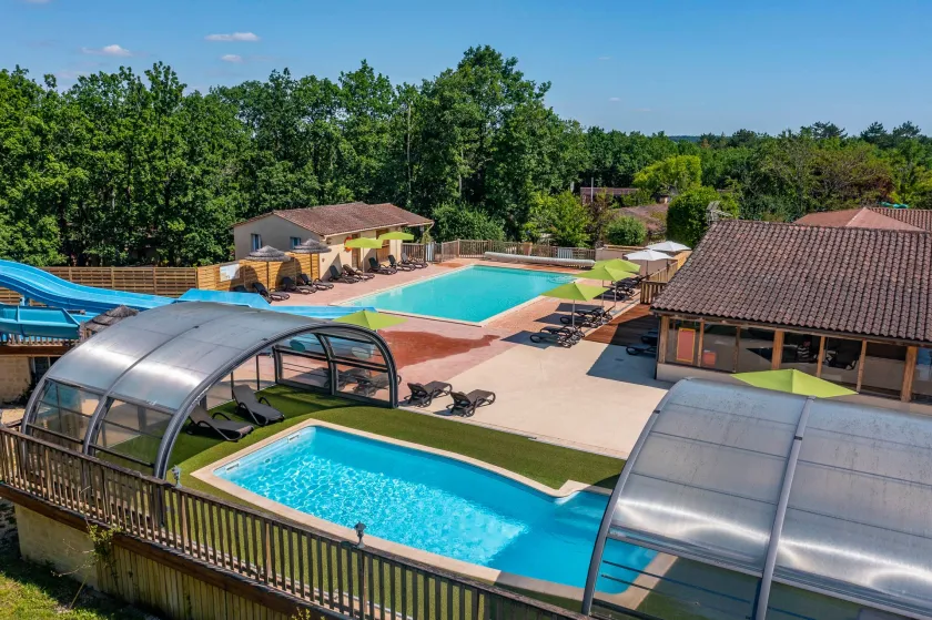 Camping Le Lou Castel ligt in Castelnaud-la-Chapelle in de Dordogne (regio Nouvelle-Aquitaine).