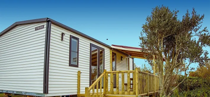 Het verzorgde terrein ligt tussen twee strandopgangen naar zandstranden met rotsen. De huuraccommodaties liggen aan de rand, de staanplaatsen centraal en zijn niet overal vlak. De camping heeft een ecolabel vanwege haar aandacht voor milieu en haar insectenhotel. Er is een leuk barretje met 's ochtends ontbijt en een terras met uitzicht. Enkele bomen zorgen voor schaduw. Vlakbij, op zicht- en gehoorsafstand, ligt een spoorlijn waar ca. 6x per uur overdag een rustig rijdende trein rijdt.