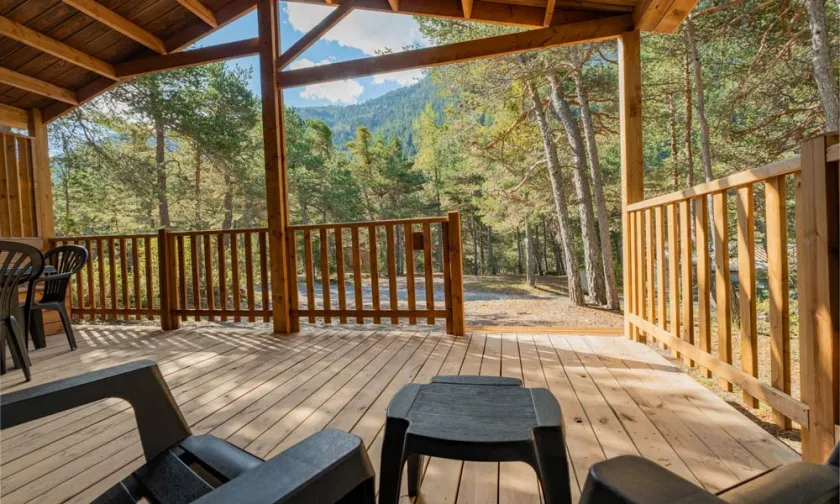 Camping Rioclar is een familiecamping gelegen in een zonnig dal aan de noordoever van de rivier de Ubaye. De camping ligt in een bos. De verharde wegen en paden verdelen het terrein in velden met verscheidene terrassen. De verhuuraccommodaties bestaan uit houten chalets, mobilhomes en lodgetenten. De staanplaatsen liggen tussen de dennenbomen. Een deel van de plaatsen heeft uitzicht op de omliggende bergen. De sportvoorzieningen waaronder badminton, tafeltennis en mulitsportterrein liggen bij de rivier. Naast de camping is een school voor kanovaren en rafting. Er is een buitenzwembad, peuterbad en waterglijbaan en een meertje met kiezelstrand dat langzaam afloopt in het water. Hier is geen toezicht. Het pittoreske dorpje Barcelonnette ligt op 10 minuten van de camping.