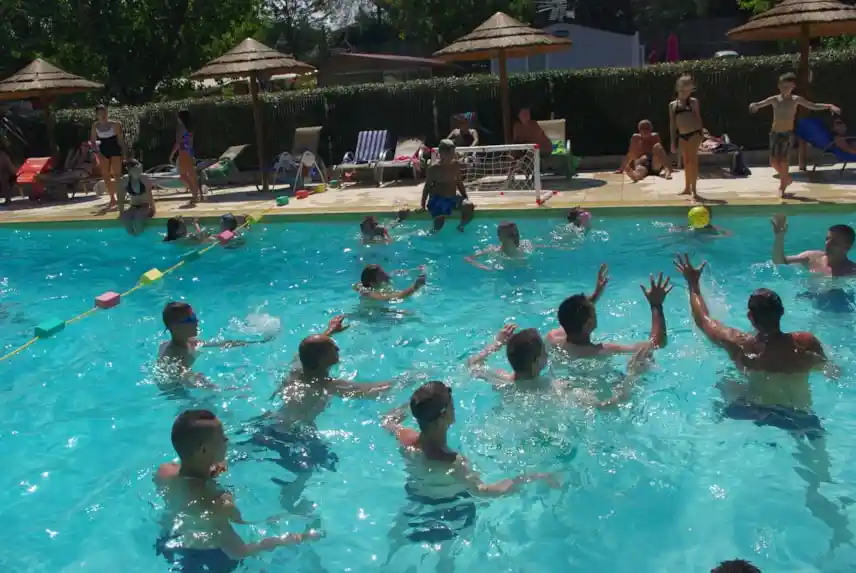 Buitenzwembad met waterglijbanen