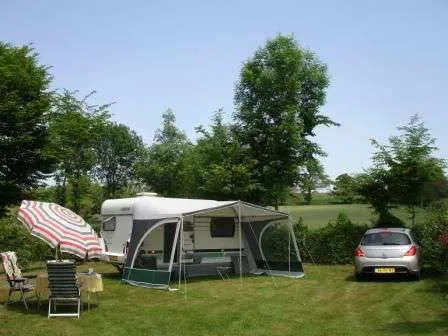 Parkachtige camping met heel ruime afgebakende plaatsen. Ideaal voor caravans en grote tenten.