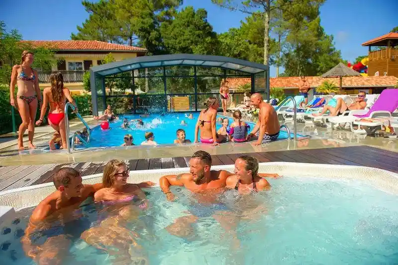 In een park met pijnbomen tussen Biarritz en Hossegor. Met de Atlantische Oceaan, een megawaterpark en dierentuin vlakbij.